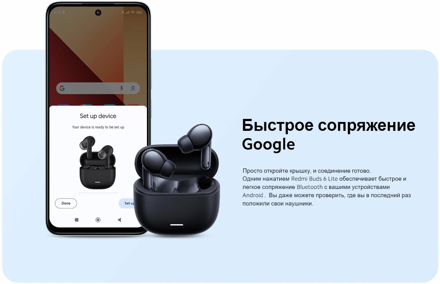 | Особенности, дополнительно | время воспроизведения аудио с учетом зарядного кейса до 38 ч, сенсорное управление, шумоподавление микрофона, 2 микрофона в каждом наушнике, технология Google Fast Pair |