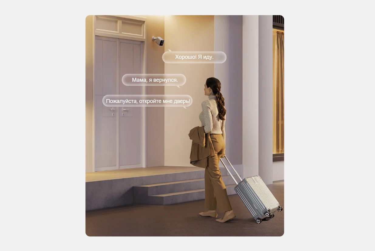 Особенностипитание от аккумулятора, голосовое управление, отслеживание движения