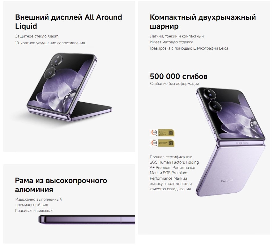 | Особенности, дополнительно | технология Dolby Atmos, поддержка Dolby Vision, беспроводная зарядка 50 Вт, оболочка Hyper OS, степень защиты IP68, 4 микрофона, поддержка HDR10+, складная конструкция, диагональ дополнительного экрана 4.01", разрешение дополнительного экрана 1392x1208 |